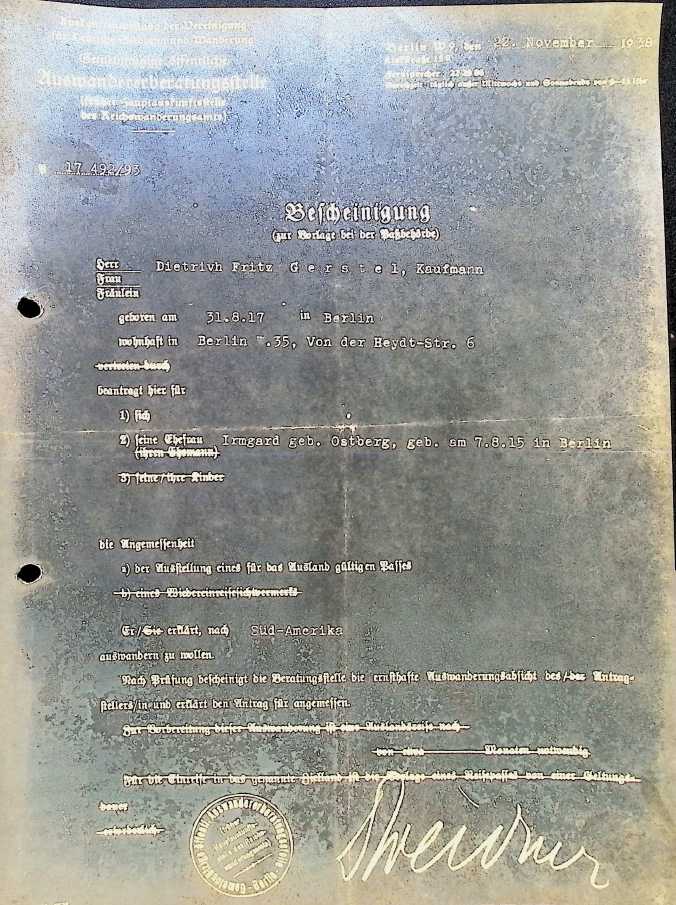 Requisito indispensable certificando pago de impuestos confiscatorios. Sin este documento no podían abandonar Alemania.